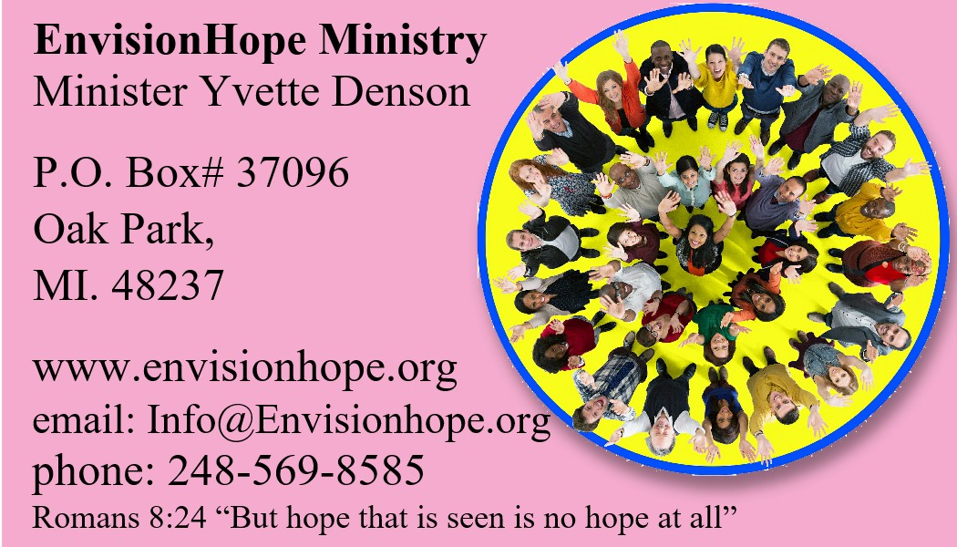 | Yvette Denson | Yvette | 20253 Meyers Road, Detroit, MI 48235 | http://envisionhope.org | ![]() |